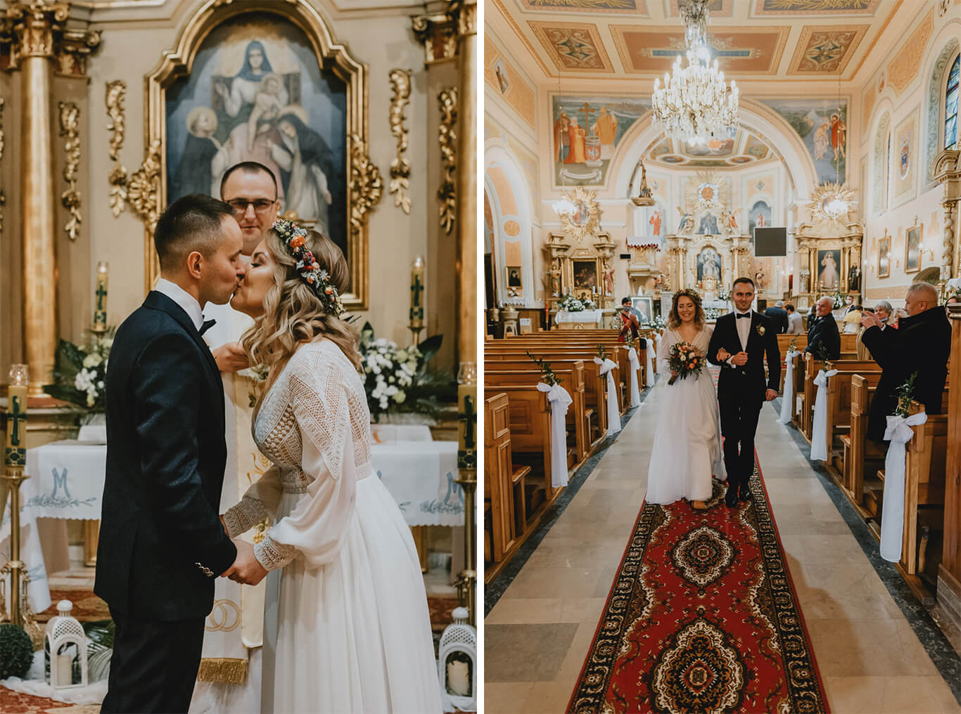 Czy przy takich perypetiach również w kościele tuż przed ślubem może się coś pozmieniać? Tak, ale tym razem na lepsze. Ślub odbył się w Kościele św. Stanisława BM w Rabie Wyżnej. Gdy Para Młoda poszła przywitać się z księdzem, a my fotografowaliśmy dekoracje kościoła usłyszeliśmy z zakrystii głośny krzyk! Tym razem jednak był to okrzyk radości, bo okazało się, że ksiądz, który poprowadzi Mszę Świętą to bliski przyjaciel Państwa Młodych, który przyjechał do nich z drugiego końca Polski, a ksiądz proboszcz zgodził się, żeby to właśnie on udzielił im ślubu. Co za szczęście!