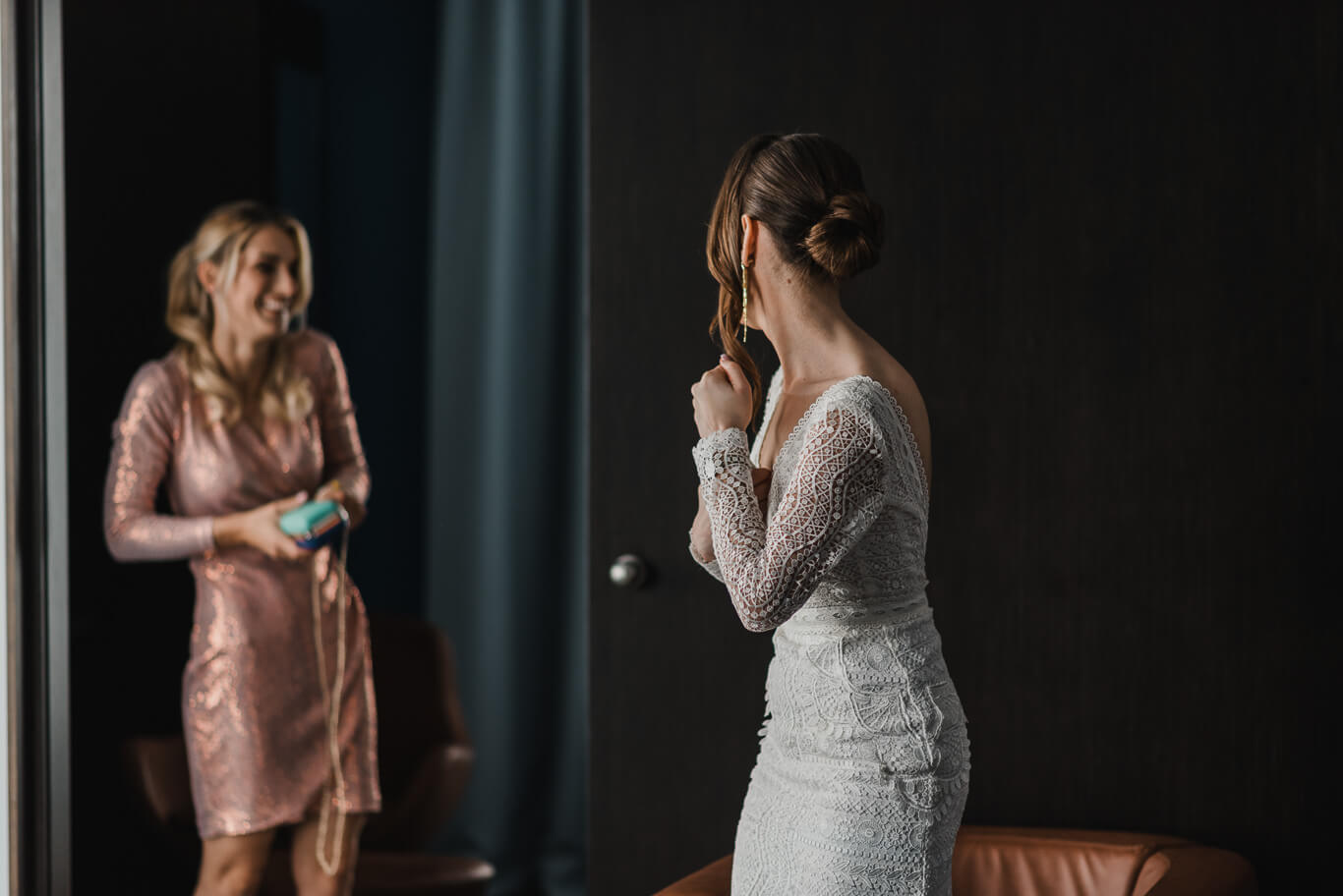 P&M to Para Młoda, która wie, że fotografia ślubna może być wyjątkową pamiątką z dnia ślubu. Udało im się zorganizować ślub i wesele na najwyższym poziomie. Panna Młoda zdecydowała się na przygotowania w hotelu, podczas gdy Pan Młody przygotowywał się w domu swoich rodziców. Nowożeńcy spotkali się na ostatnim piętrze hotelu w apartamencie z widokiem na panoramę Krakowa, skąd widać było Kościół Mariacki oraz Rynek Główny. Był to wyjątkowy czas i dużo emocji zarówno podczas First Looku. Znaleźliśmy też czas na kilka pamiątkowych zdjęć z rodzicami.