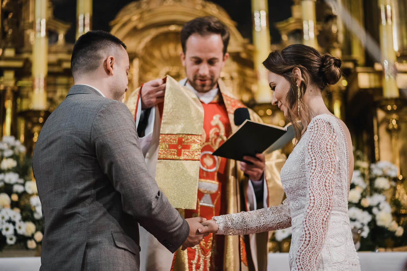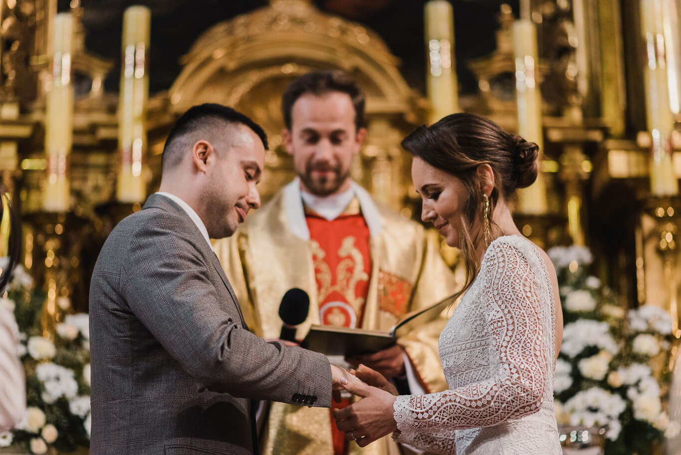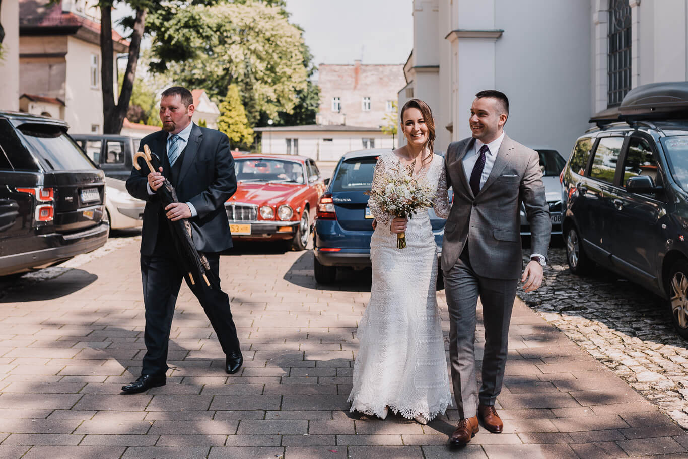 Przyszli nowożeńcy weszli do bazyliki św. Floriana przy krakowskim Placu Matejki razem. Czekający w środku goście byli olśnieni, a światło w bazylice jedynie podkreślało blask Młodej Pary. Ona w sukni z eleganckim trenem, On w stylowym garniturze. Uśmiechom i szczęściu po przysiędze nie było końca.